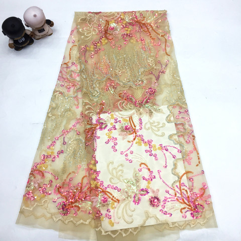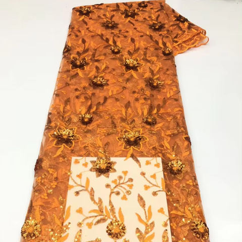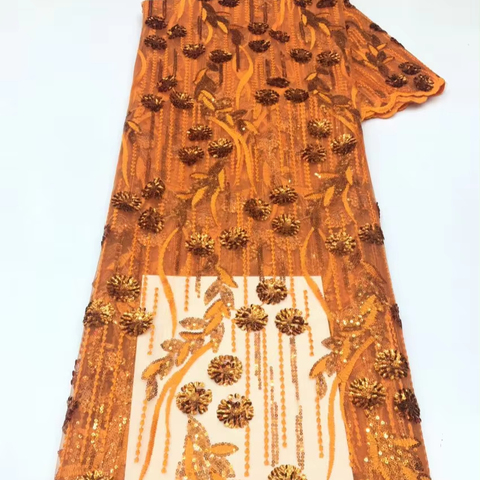 Licht Werk Bloemen Lovertjes Stof Kwaliteit Afrikaanse Lovertjes Tule Kant Netto Kant Net Kant Met Pailletten Oranje Stof